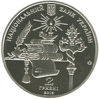 | Описание аверса: | На аверсе монеты вверху размещен малый Государственный Герб Украины и надпись полукругом НАЦИОНАЛЬНЫЙ БАНК УКРАИНЫ, в центре - композицию с церковными атрибутами; внизу: номинал 2 / ГРИВНЫ, год чеканки монеты - 2015; логотип Монетного двора Национального банка Украины (справа). |