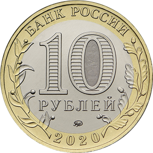 Описание аверса: На диске в центре — обозначение номинала монеты: «10 РУБЛЕЙ», внутри цифры «0» — скрытые, видимые поочередно при изменении угла зрения изображения числа «10» и надписи «РУБ», внизу — товарный знак монетного двора; на кольце вверху — надпись: «БАНК РОССИИ», внизу — год выпуска «2020», слева и справа — стилизованные ветви растений, переходящие на диск.