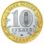 | Описание аверса: | В центре диска — обозначение достоинства монеты "10 РУБЛЕЙ". Внутри цифры "0" — скрытые, видимые поочередно при изменении угла зрения изображения цифры "10" и надписи "РУБ". В нижней части диска — товарный знак монетного двора. В верхней части кольца по окружности — надпись: "БАНК РОССИИ", в нижней — дата "2006", слева и справа — стилизованные ветви растений, переходящие на диск. |