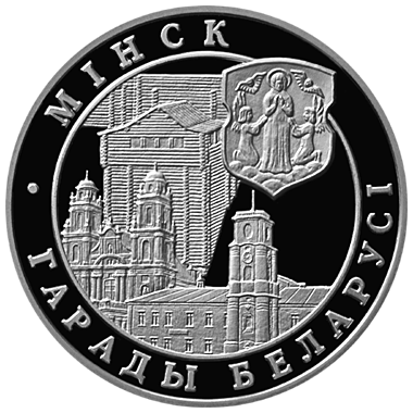| Описание реверса: | В центральной части на заднем плане – рельефное изображение ворот Минского замка XII века реконструкции Ю.А. Зайца; на переднем – Кафедрального костела и башни с курантами на Соборной площади начала XX века; вверху справа – герб города; по кругу надписи: "МIНСК" и "ГАРАДЫ БЕЛАРУСI". Минск – самый крупный город Республики Беларусь. Первое упоминание о нем в письменных источниках относится к 1067 г. Возникнув как форпост Полоцкой земли на ее южных рубежах, он не раз на протяжении многих веков стоял на пути у завоевателей. За более чем девятисотлетнюю историю неумолимое время, войны и пожары часто меняли облик города. |
