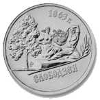 Описание реверса: В центре – изображение скульптурной группы аграриев, вверху – год основания города - 1863 г.