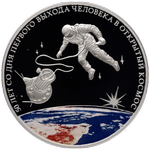 Дополнительная информация: С лицевой и оборотной сторон монеты по окружности имеется выступающий кант. 18 марта 1965 года советский космонавт Алексей Леонов совершил первый в истории выход за пределы космического корабля и оказался один на один с открытым космосом.