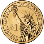 | Описание реверса: | Изображение статуи свободы, слева от неё $1, а по окружности надпись "UNITED STATES OF AMERICA". |