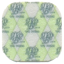 | Описание аверса: | Ромбовидная сетка с нанесением логотипа «ПРБ», под ним – обозначение номинала «ТРИ РУБЛЯ», в нижнем правом углу логотипа – год образца «2014». |