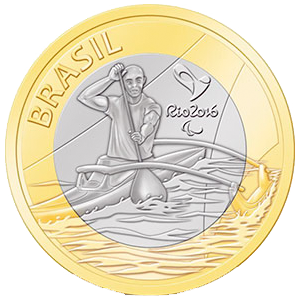 Описание реверса: На реверсе монеты спортсмен в каноэ с веслом. В центре эмблема Олимпийских игр в Рио 2016 игр и надпись слева сверху «BRAZIL».