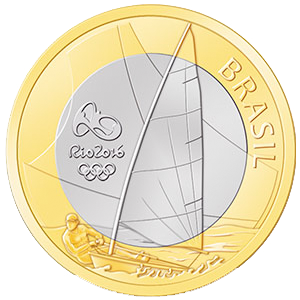 | Описание реверса: | На реверсе монеты яхтсмен управляющий парусником. В центре эмблема Олимпийских игр в Рио 2016 игр и надпись слева сверху «BRAZIL». |